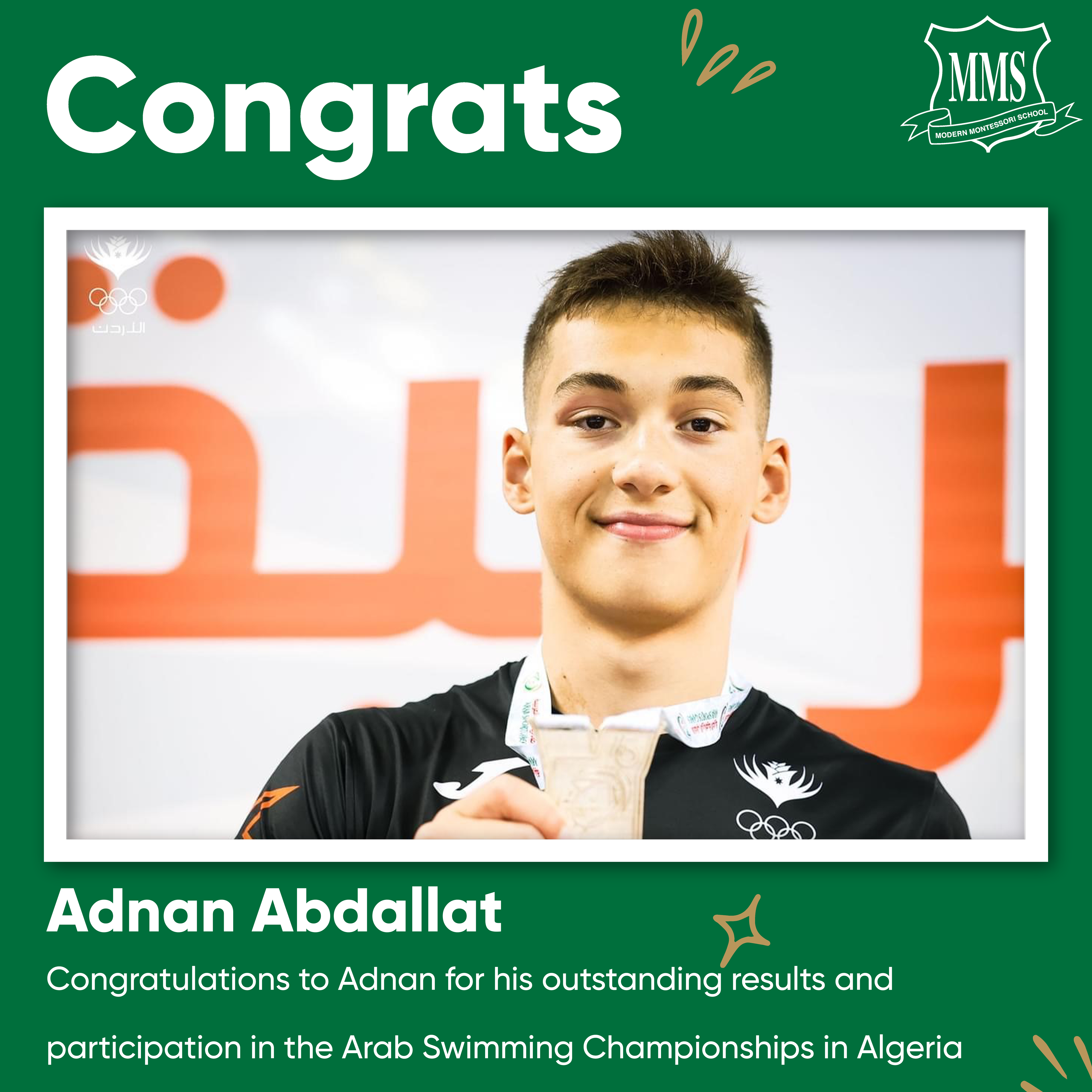Congratulations to our student, Adnan Abdallat, on achieving outstanding results in the Arab Swimming Championships in Algeria.